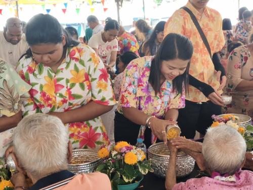 "พช.ร่อนพิบูลย์ สืบสานประเพณีสงกรานต์ รดน้ำขอพรผู้สูงอายุ เสริมสิริมงคล"