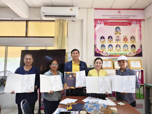 นางโสรญา ยอดราช พัฒนาการอำเภอร่อนพิบูลย์ พร้อมด้วยเจ้าหน้าที่พัฒนาชุมชนอำเภอ ร่วมต้อนรับเจ้าหน้าที่จากสำนักงานอุตสาหกรรมจังหวัดนครศรีธรรมราช ในการลงพื้นที่ให้คำแนะนำการขอมาตรฐานผลิตภัณฑ์ชุมชน "มผช." แก่ผู้ประกอบการ OTOP อำเภอร่อนพิบูลย์ เพื่อพัฒนาและยกระดับผลิตภัณฑ์ชุมชนให้ได้มาตรฐาน มีคุณภาพ ก้าวสู่มาตรฐานสากลในอนาคต