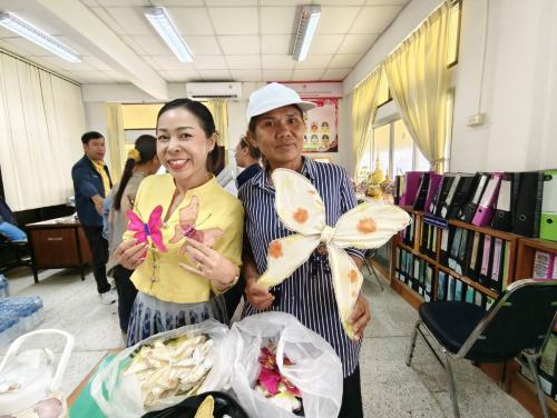 นางโสรญา ยอดราช พัฒนาการอำเภอร่อนพิบูลย์ พร้อมด้วยเจ้าหน้าที่พัฒนาชุมชนอำเภอ รวบรวมผีเสื้อประดิษฐ์จากผ้าไทยพื้นถิ่น ซึ่งผู้ประกอบการ OTOP ร่วมแรงร่วมใจกันประดิษฐ์ เตรียมพร้อมส่งมอบแก่อำเภอร่อนพิบูลย์ เพื่อส่งต่อสนับสนุนการออกร้านงานกาชาดของสมาคมแม่บ้านมหาดไทย ประจำปี 2568 ภายใต้แนวคิด “70 พรรษา ขัตติยานารีรัตนา ปวงประชาสดุดี” เพื่อเฉลิมพระเกียรติ สมเด็จพระกนิษฐาธิราชเจ้า กรมสมเด็จพระเทพรัตนราชสุดาฯ สยามบรมราชกุมารี ในวาระทรงเจริญพระชนมพรรษาครบ 70 พรรษา ที่จัดขึ้นระหว่างวันที่ 11 - 22 ธันวาคม 2568 ณ สวนลุมพินี เขตปทุมวัน กรุงเทพมหานคร