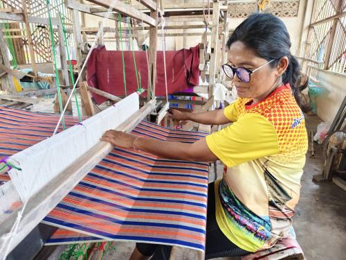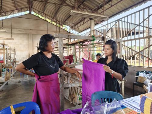 "พช.ร่อนพิบูลย์ ติดตามกลุ่มอาชีพสมาชิกกองทุนพัฒนาบทบาทสตรี กลุ่มทอผ้าบ้านทำเนียบ"